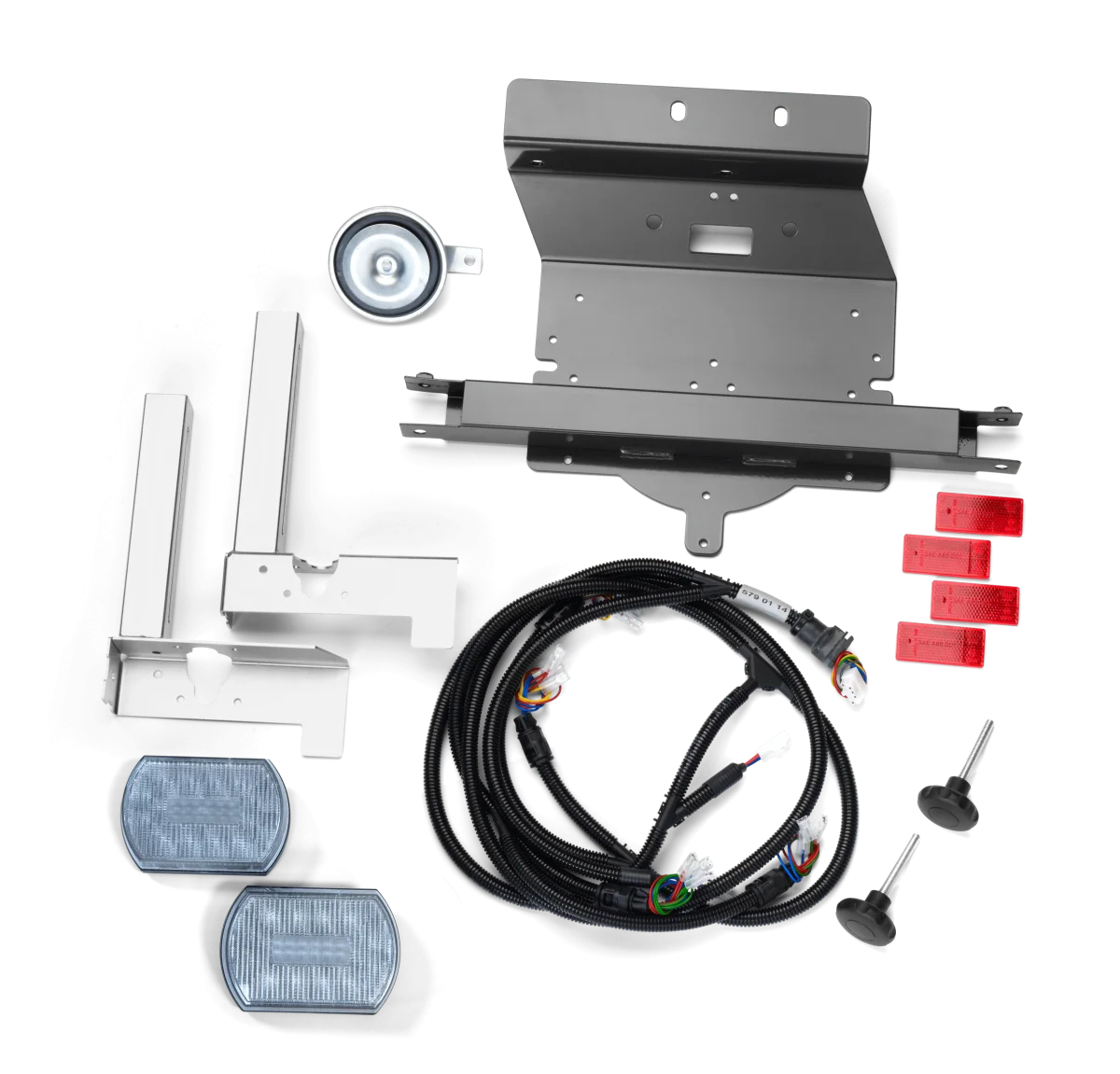 Achterpositie- en richtingaanwijzers te monteren op ROPS-stang. Verstelbare positie om het inklappen van de ROPS-stang en smal manoeuvreren mogelijk te maken. LED-lampen voor een optimale levensduur en een laag energieverbruik. Vereist schakelkastkit.