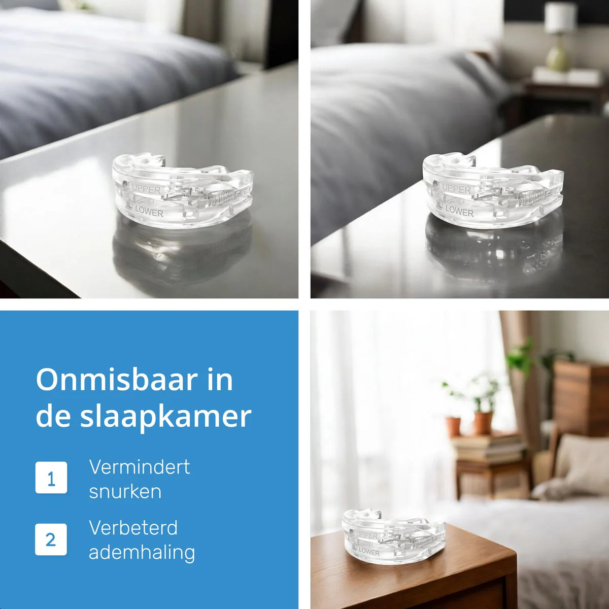 Twee-in-één Oplossing: Verhelpt zowel snurken als tandenknarsen, voor een betere nachtrust.