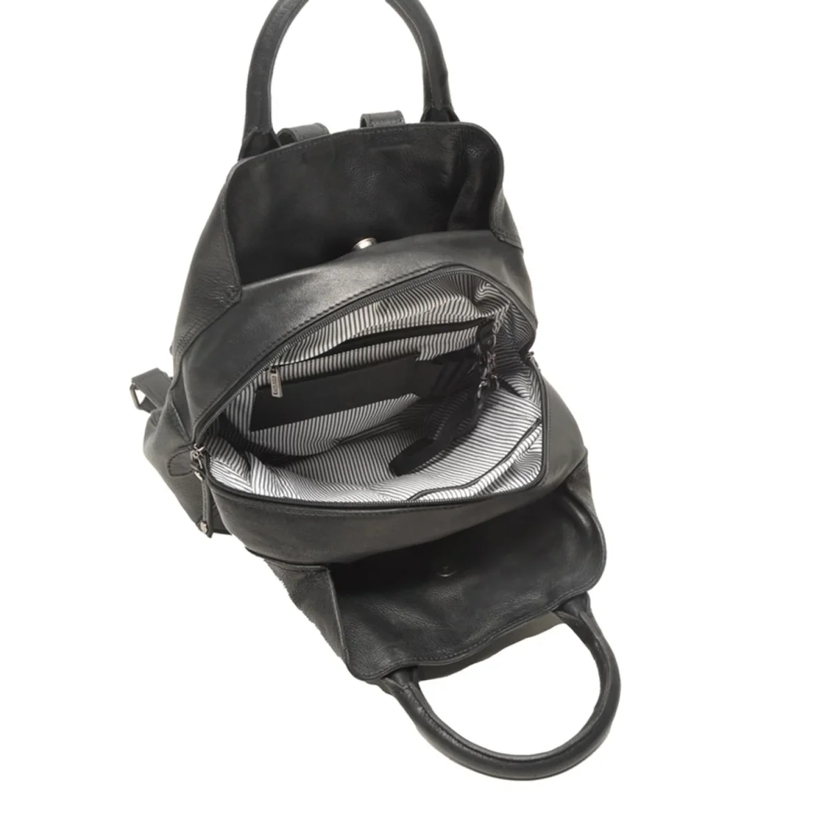 - Binnenin diverse vakken zoals een ritsvak, pennenlusjes en een sleutelriempje