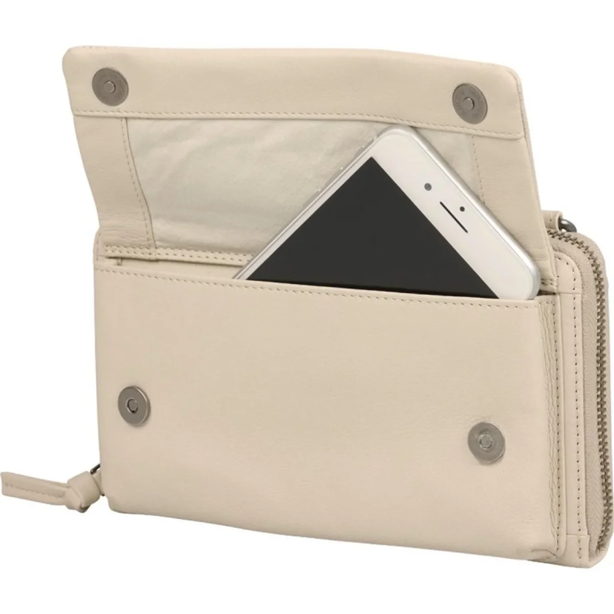In het andere vak is ruimte voor 12 pasjes, briefgeld en muntgeld.
