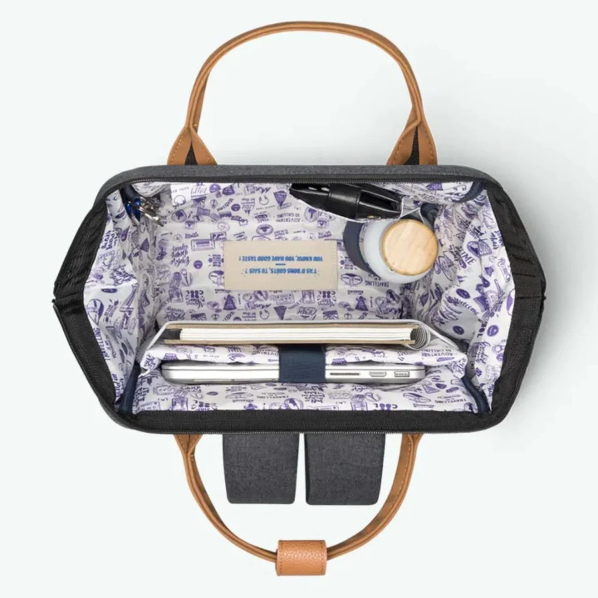 Deze Cabaïa rugzak valt niet alleen op door het trendy design, maar ook door de vrolijke binnenvoering met subtiele lavendelgeur. Elke keer dat je de tas opent, word je verrast door een speels detail.