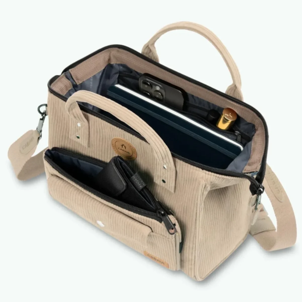 De tas heeft de bekende Cabaïa ritsopening, waardoor je in één oogopslag ziet waar alles zit. Met de brede band draag je de tas comfortabel met je mee. Wordt dit jouw nieuwe favoriete tas?