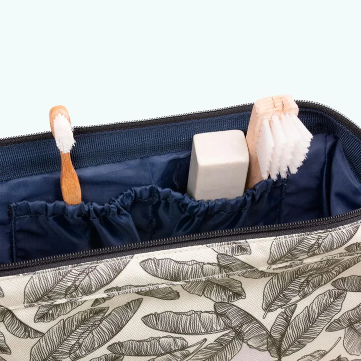 Aan de binnenzijde vind je drie steekvakjes, ideaal voor kleinere items zoals je tandenborstel, lippenbalsem of make-up. Geen rommelige bodem meer, maar alles netjes georganiseerd.