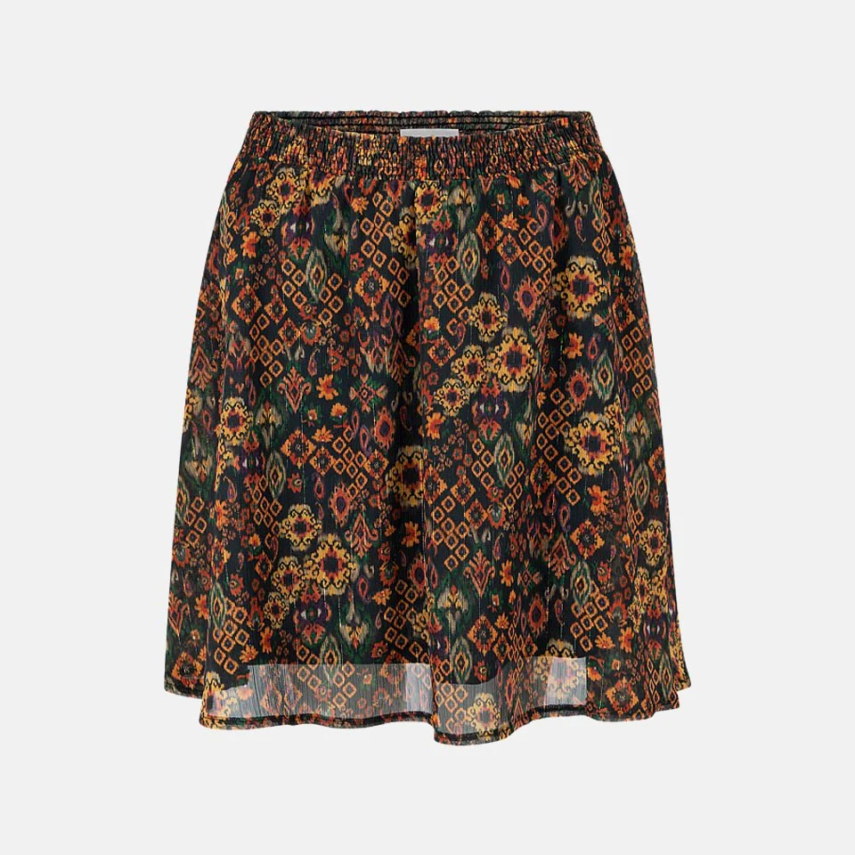Deze rok is een echte eye-catcher door de prachtige print en is een perfect item voor dit najaar. De kleuren schreeuwen herfst! De rok is gemakkelijk te combineren met goede basics. Laat de kleuren van de rok terugkomen in jouw top.