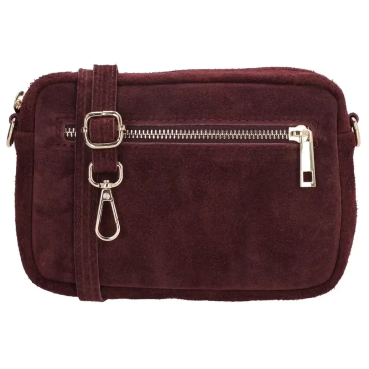 Ga voor een mooie look met dit suède tasje Charm! De tas heeft een mooie look met stijlvolle goudkleurige details.