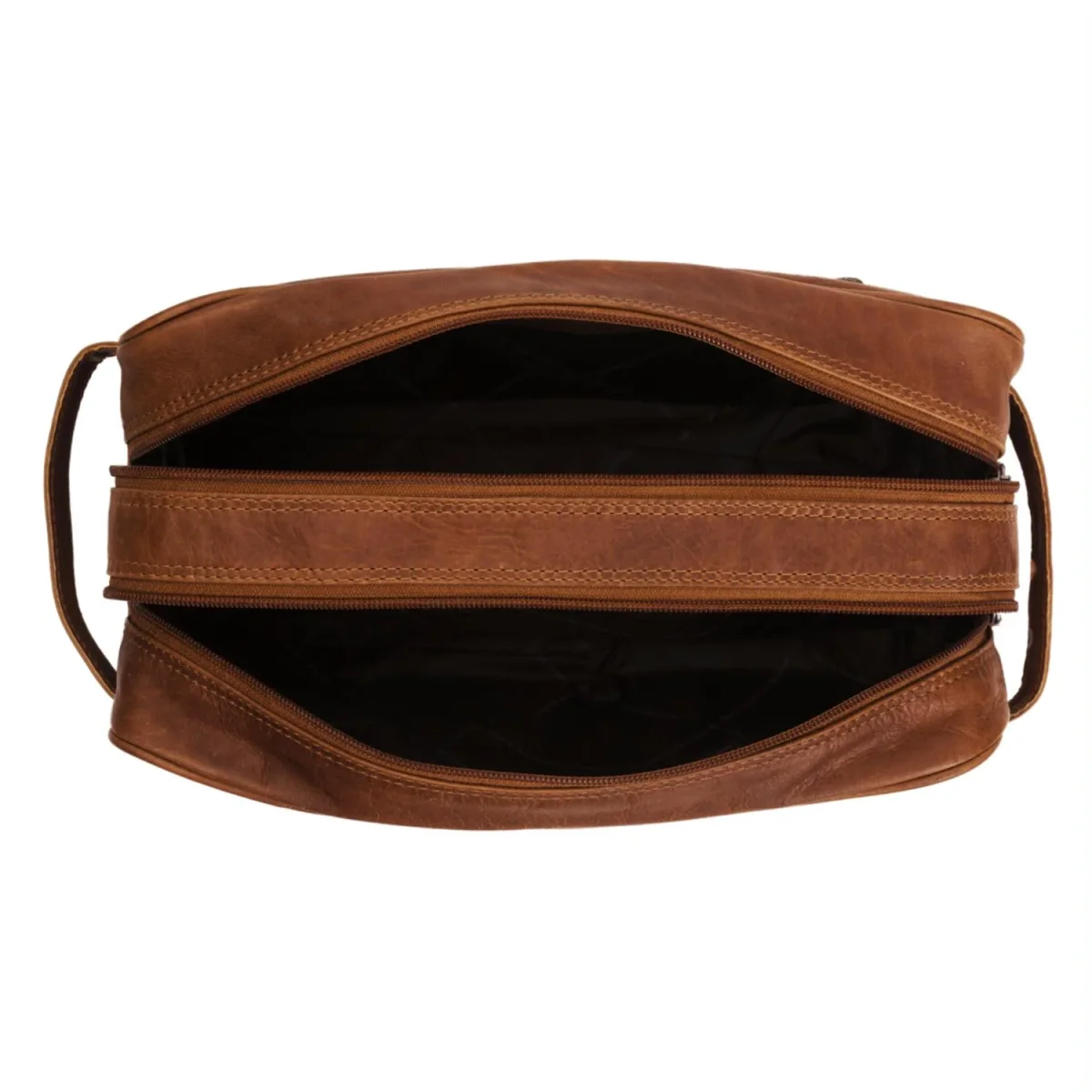 Opzoek naar de ideale toilettas voor je vakantie of weekendje weg? Dan is de leren toilettas Stacey iets voor jou! De tas is voorzien van twee ruime vakken met ritssluiting. Aan de binnenkant zit nog een extra vak met ritssluiting. Hierdoor kunnen al je spullen overzichtelijk worden opgeborgen. De voering aan de binnenkant is makkelijk schoon te maken doordat dit van glad, synthetisch materiaal is gemaakt. De toilettas is gemaakt van Wax Pull-up leer. Dit wordt gekenmerkt door een zachte en soepelere structuur. Eventuele gebruikerssporen kun je gemakkelijk wegwrijven door de speciale wax behandeling die de tas heeft ondergaan. Zo blijft je toilettas jarenlang als nieuw!