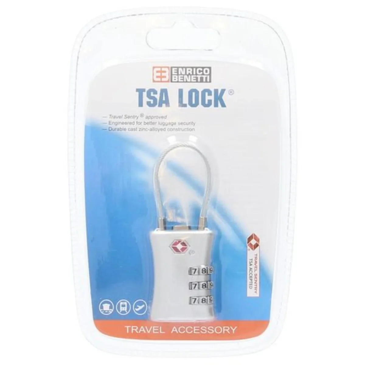 Dit handige kabelslot van Enrico Benetti biedt extra veiligheid aan je tassen, koffers en meer! Het slot heeft een TSA functie. Een TSA slot is handig voor wanneer de douane je koffer of tas wilt controleren. De douane hoeft het slot niet te forceren, maar kan deze eenvoudig openen met een ‘loper’. Het 3-cijferige slot is makkelijk in te stellen. Met het knopje aan de bovenkant maak je het slot weer eenvoudig open.