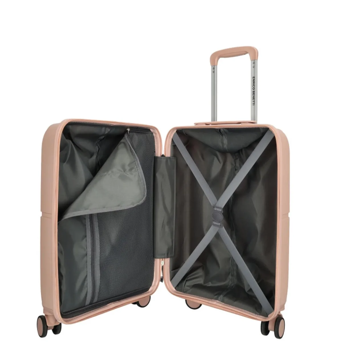 De Tokyo koffer van Enrico Benetti is perfect voor al je reizen! Of je nou een weekendje weg gaat, op relaxvakantie of op een zakelijke reis. De koffer heeft een handbagage formaat met diverse opbergvakken. Wat deze koffer zo fijn maakt is het voorvak met een gewatteerd laptopvak. Deze neem je daardoor makkelijk en veilig met je mee op al je komende reizen!