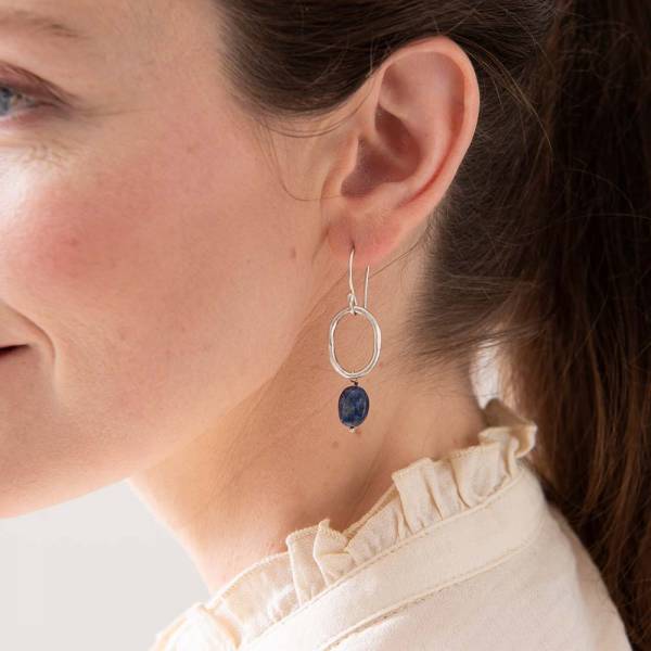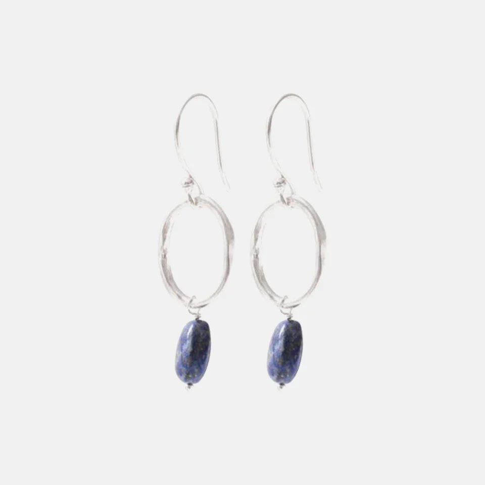 De Graceful Lapis Silver Earrings zijn messing verzilverde haakoorbellen met een grote ovale ring. De oorbellen hebben een Lapis Lazuli edelsteen.
