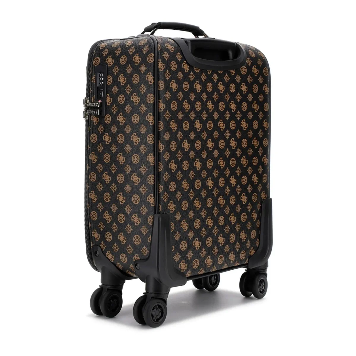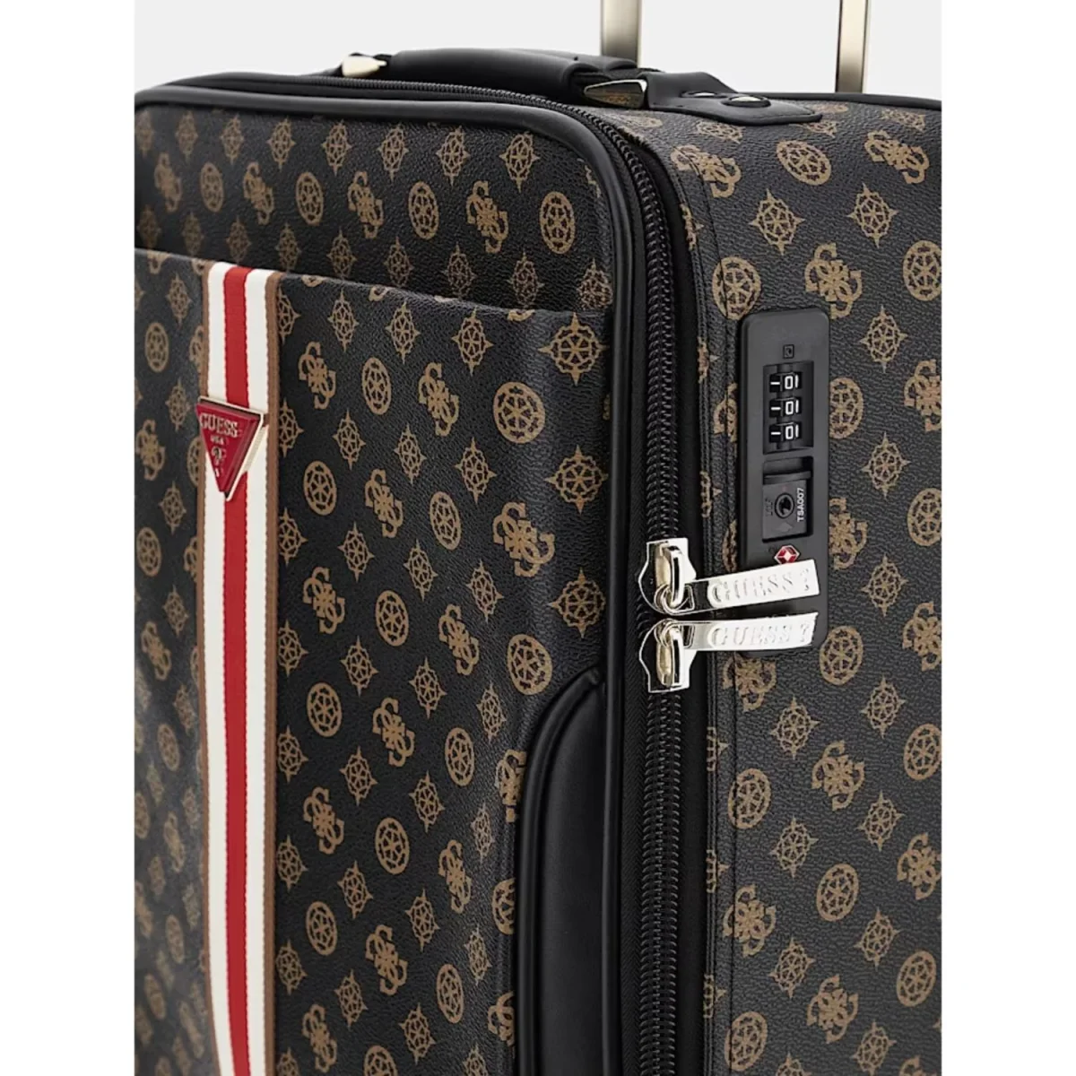 Wordt deze stijlvolle Guess koffer jouw nieuwe reispartner? De koffer heeft een trendy all-over Guess print met een rood-witte streep in het midden, wat de koffer een sportievere uitstraling geedt. Naast de mooie looks, is de koffer ook erg handig in gebruik.Hij heeft een groot binnenvak waar je al jouw benodigdheden in kwijt kan. Door de 4 wielen, kun je de kofferook nog eens soepel verplaatsen. Waar neem jij deze koffer mee naar toe?