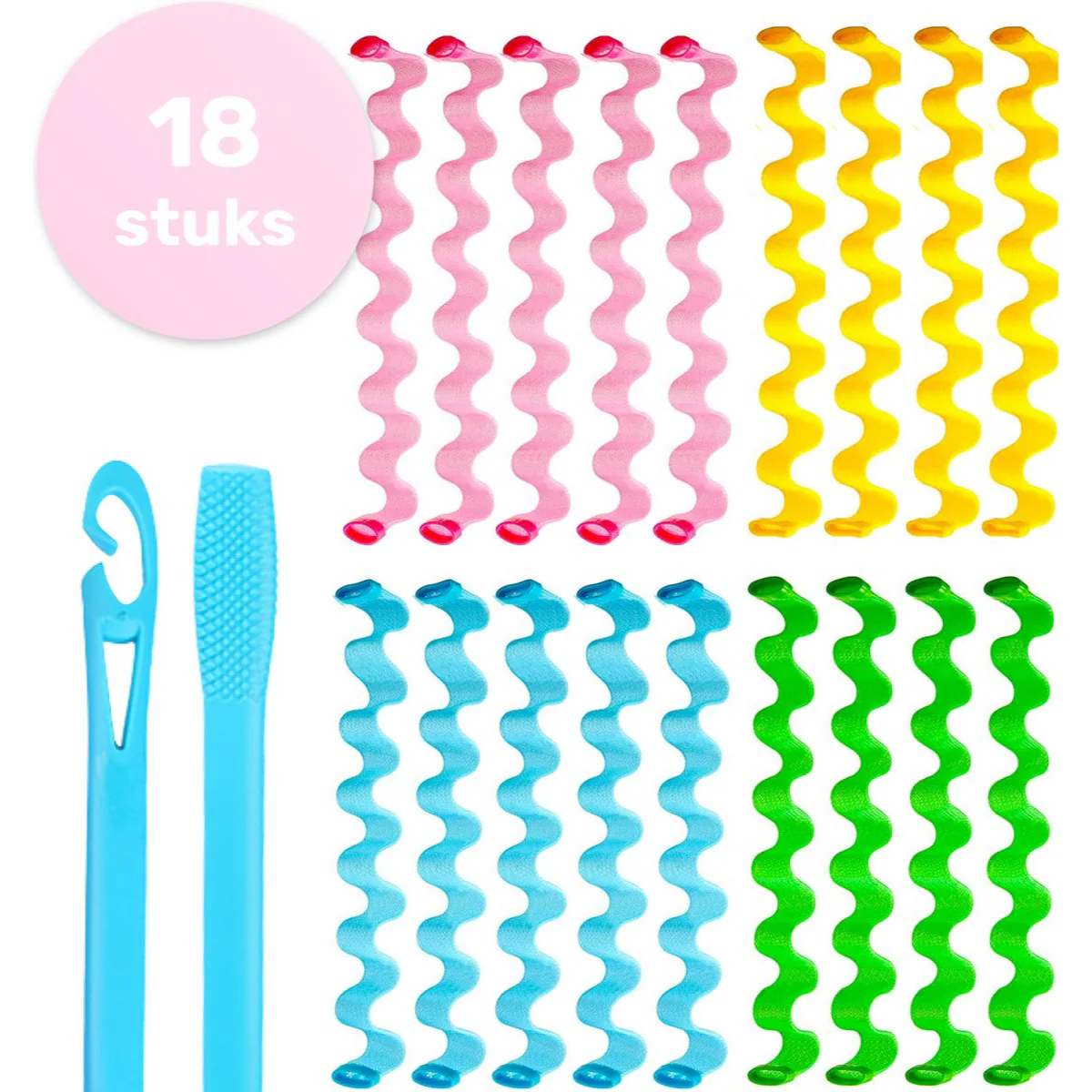 Ontdek de voordelen van hittevrij stylen met onze Heatless Curls-set van 18 stuks en 30 cm lang. Bestel nu en trakteer jezelf op prachtige, gezonde krullen!