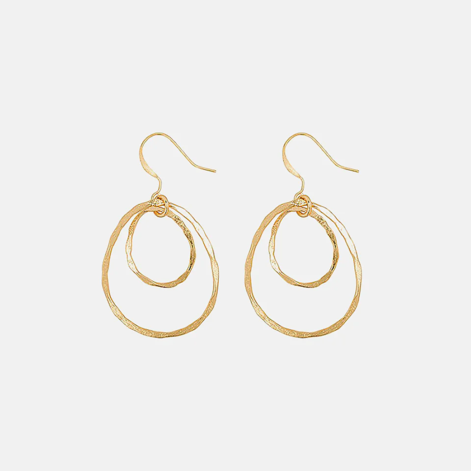 De oorbel bestaat uit twee golvende, onregelmatig gevormde cirkels.