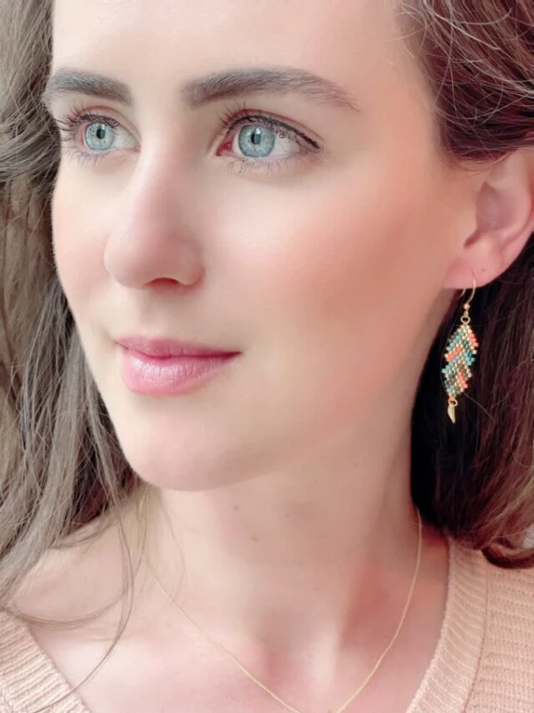 En hebben een goudkleurig blaadje onderaan. De oorbellen zijn 4 cm lang. En worden handgemaakt in Thailand.