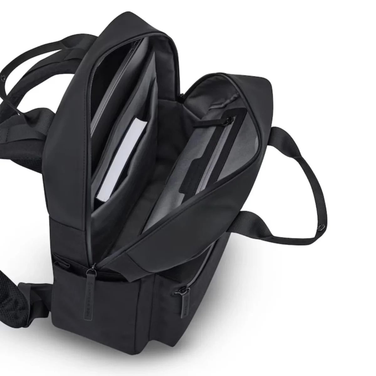 Binnenin vind je een ruim hoofdvak met ritssluiting, een 15 inch laptopvak én een apart tabletvak, zodat je elektronica altijd veilig is opgeborgen. Verder heeft de Bergen Pro meerdere steekvakken, een ritsvak voor kleine spullen en een extra veiligheidsvak aan de achterzijde.