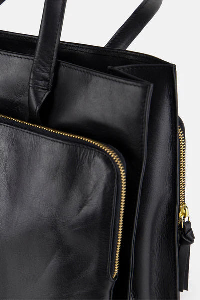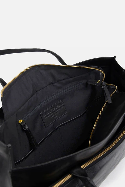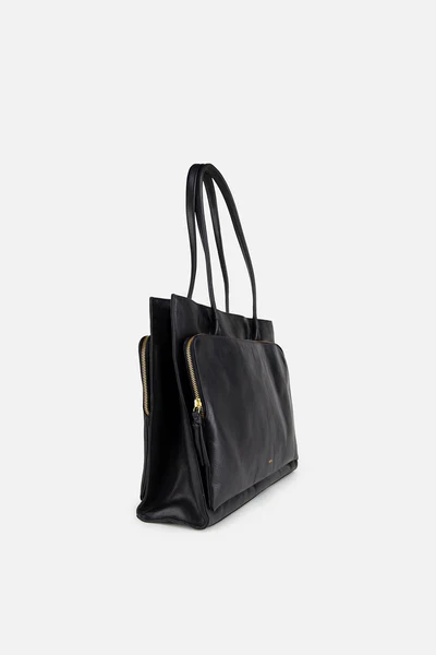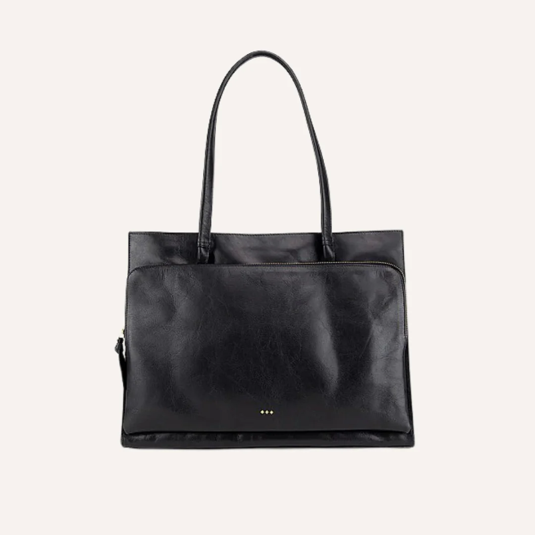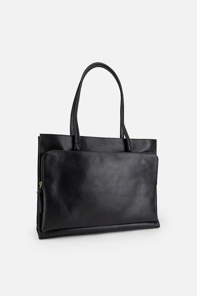 De Mel Shopper heeft twee ritsvakken, twee schuifvakken aan de buitenkant, een hoofdvak, een gewatteerd laptopvak, een haakje voor je sleutelbos en een schuifvak aan de binnenkant.