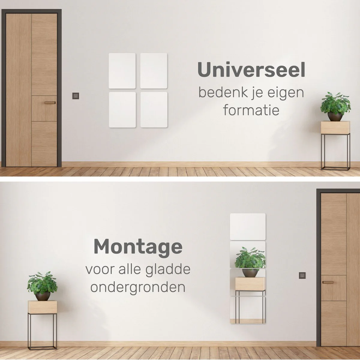 Breng stijl en gemak naar je huis met onze Plakspiegel Set van 4. Bestel nu en geniet van een snelle en eenvoudige manier om je ruimtes te voorzien van een functionele en elegante spiegel!