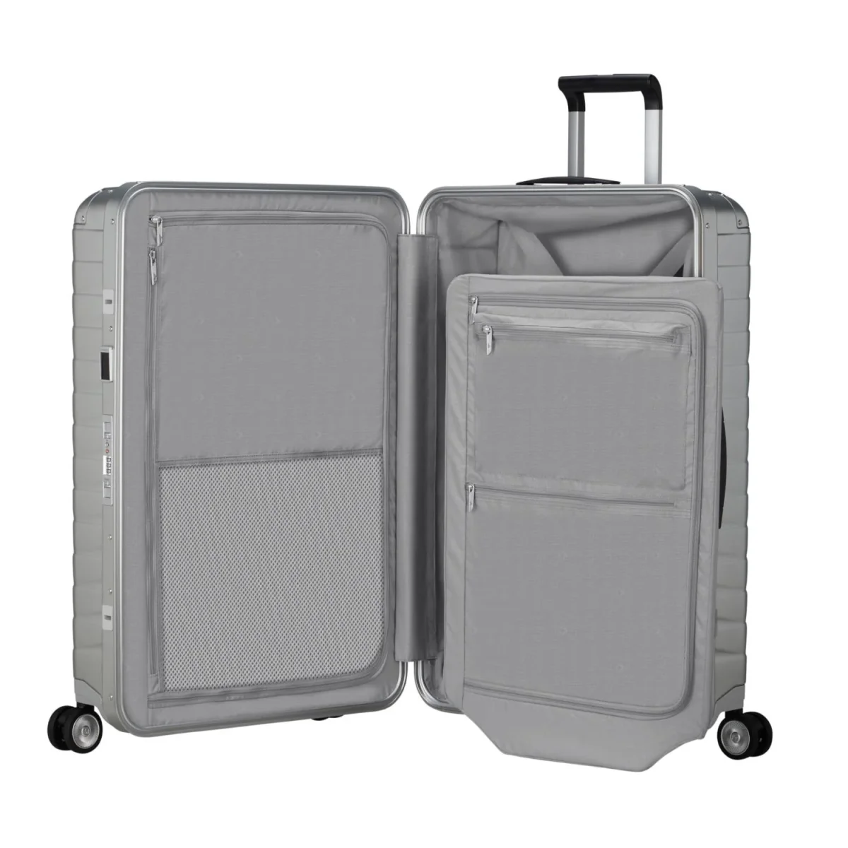Deze harde koffer combineert het kenmerkende design van Proxis met een mooie aluminium afwerking van topkwaliteit. Zo is de koffer voorzien van extra verstevigde hoeken, een TSA-slot en een dubbele trekstang. De Proxis koffer is niet alleen sterk en veilig, maar ook erg comfortabel in gebruik! De 4 soepele en stille softwieltjes rollen fijn met je mee zodat je deze niet achter je aan hoeft te trekken. Daarnaast heeft de koffer een georganiseerde indeling inclusief een verwijderbaar tussenschot. De verstelbare trekstang en het handvat aan de zij- en bovenkant zorgen er daarnaast voor dat je de koffer eenvoudig met je meeneemt.