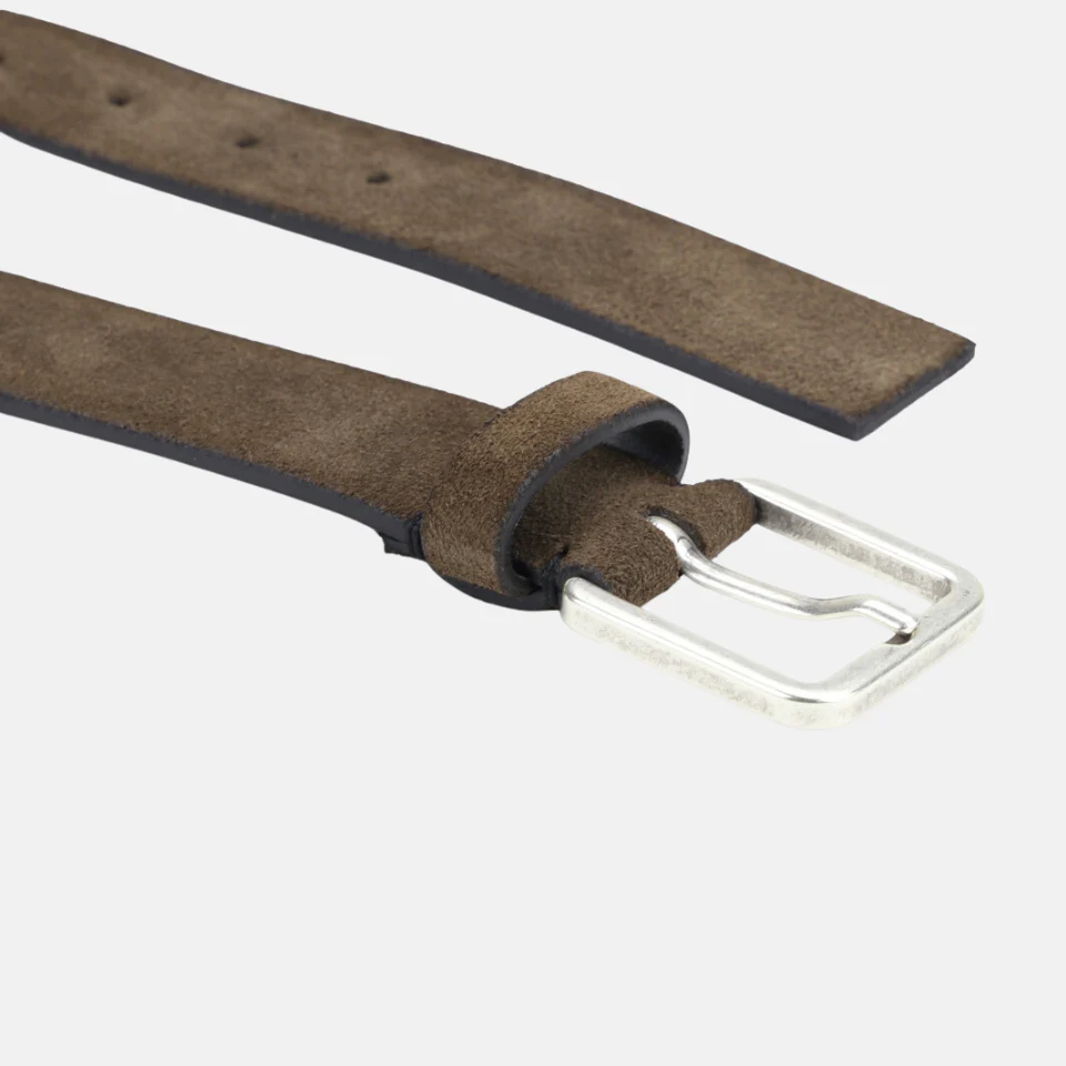 De Target belt is gemaakt van een zachte, luxe suede. En heeft scherpe rechthoekige vormen en is afgewerkte met een geverfde rand. De minimalistische riem heeft een zilveren metalen gesp. De riem is 3,5 cm breed.