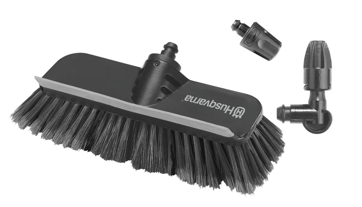 De voertuigkit bestaat uit een brede ventilatorstraalpijp voor een snelle en zachte reiniging van gevoelige oppervlakken, een gebogen straalpijp voor moeilijk bereikbare plaatsen en een wasborstel met een zuigmond.