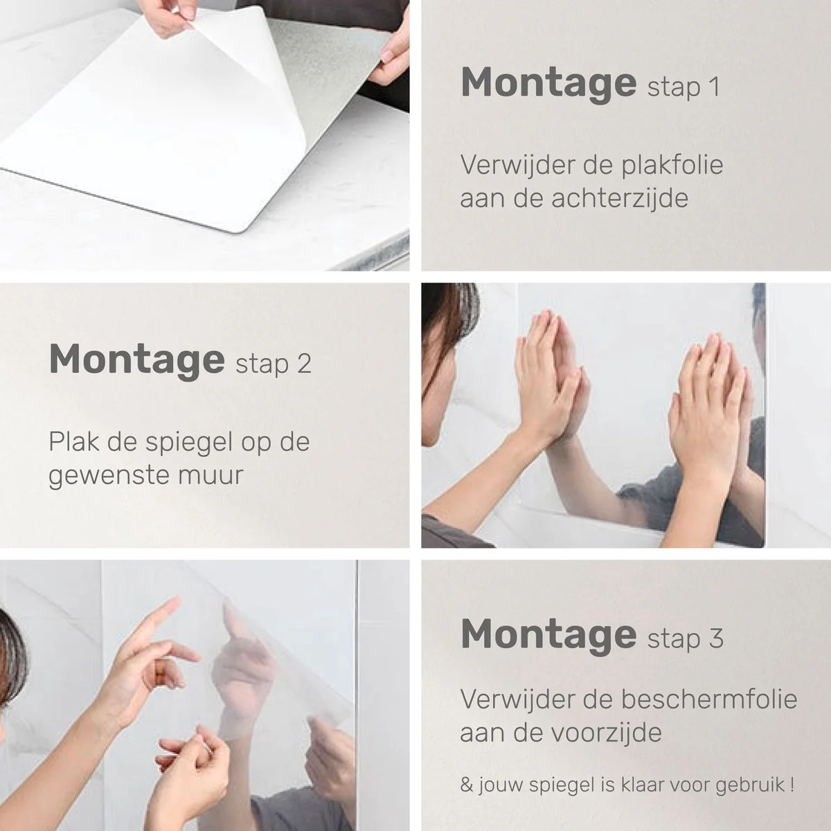 De plakspiegels zijn zelfklevend, waardoor ze eenvoudig te installeren zijn zonder gedoe met boren, schroeven of lijm. Hierdoor kunt u uw muren en oppervlakken beschermen tegen schade en zijn de spiegels gemakkelijk te verwijderen en opnieuw te positioneren.