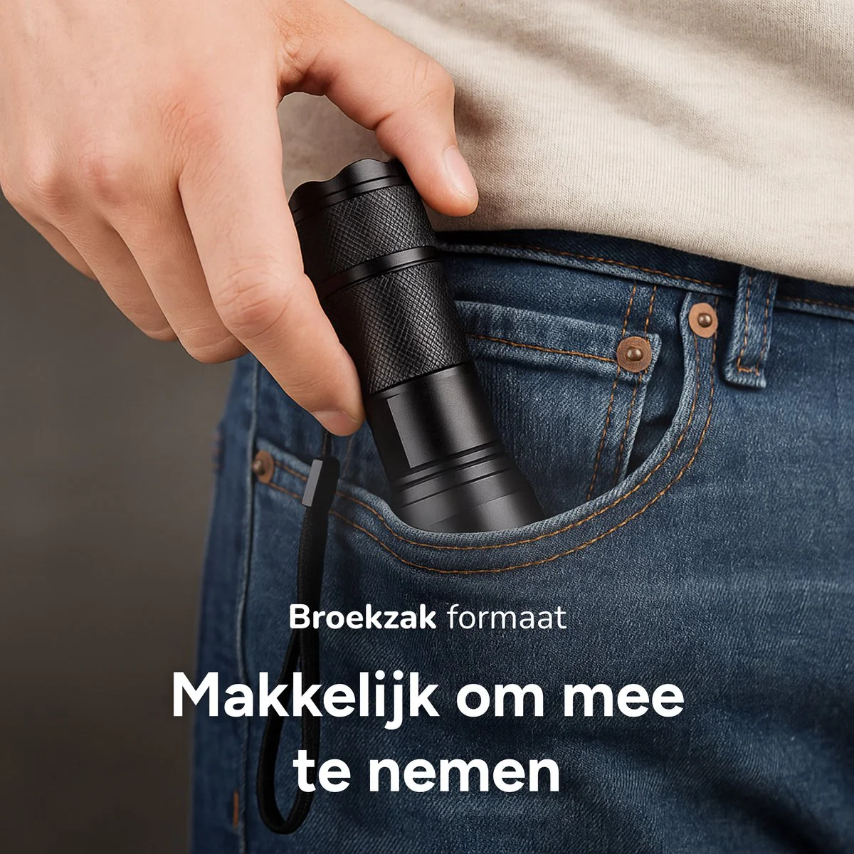 - Compact en draagbaar: Met een lengte van slechts 13 cm past deze zaklamp gemakkelijk in je zak of tas.
