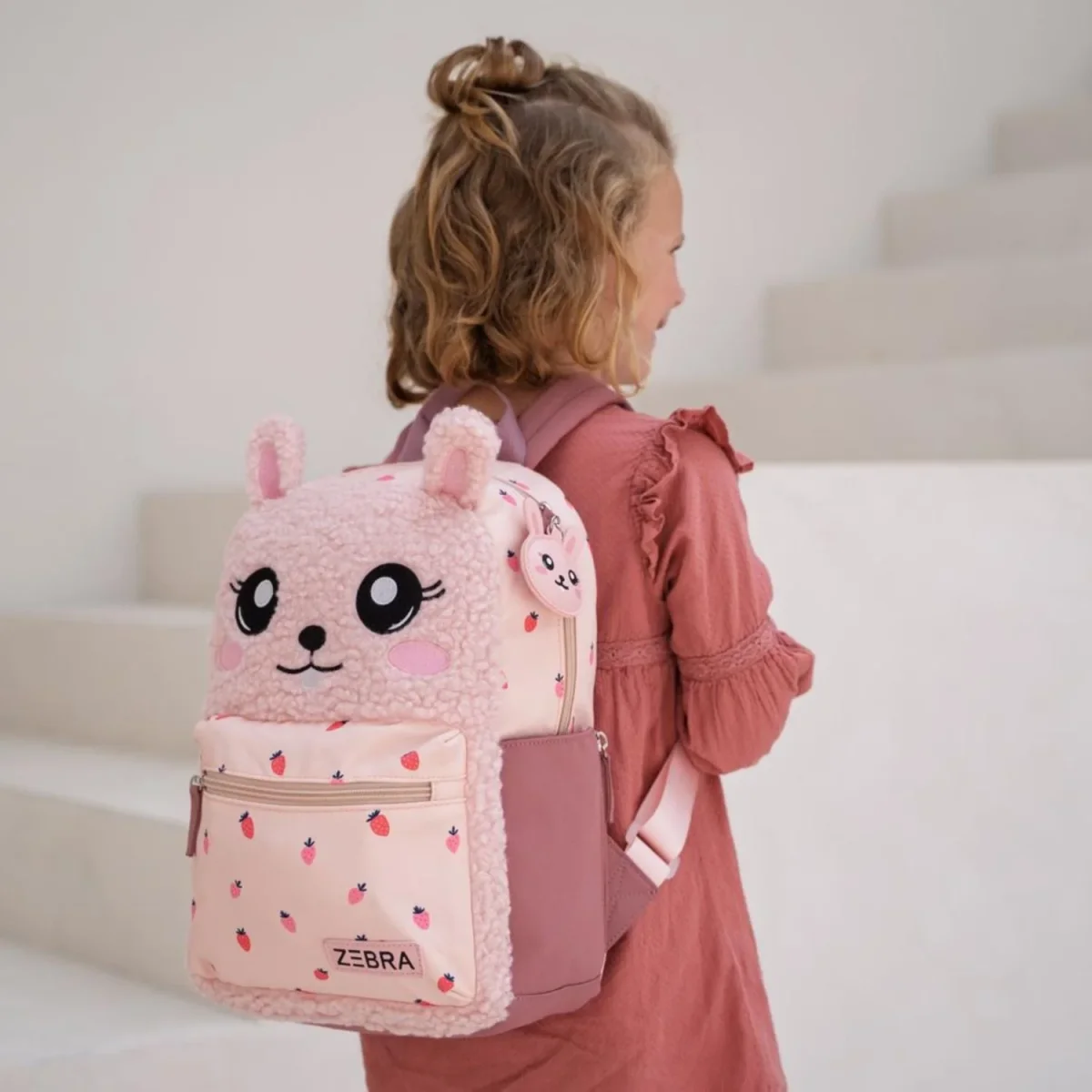 Maak kennis met je nieuwe favoriete maatje: de Zebra Trends Buddie Rugzak! Deze superzachte teddy rugzak in schattig roze heeft een lief gezichtje, schattige oortjes én een vrolijke aardbeienprint op het voorvakje en de zijkanten. Perfect voor kleintjes die van knuffelig én fruitig houden!